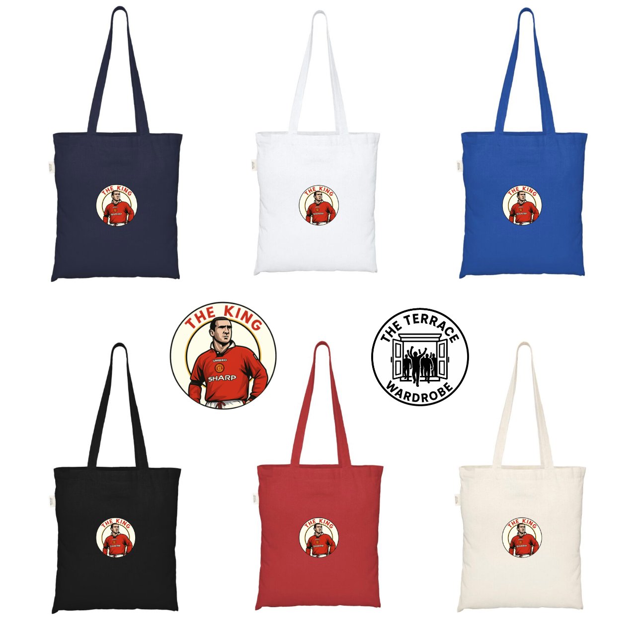 Show your support in style with this eco-friendly tote bag featuring a bold “The King Cantona” design — the perfect match-day accessory for Manchester United fans who want to stand out from the crowd.